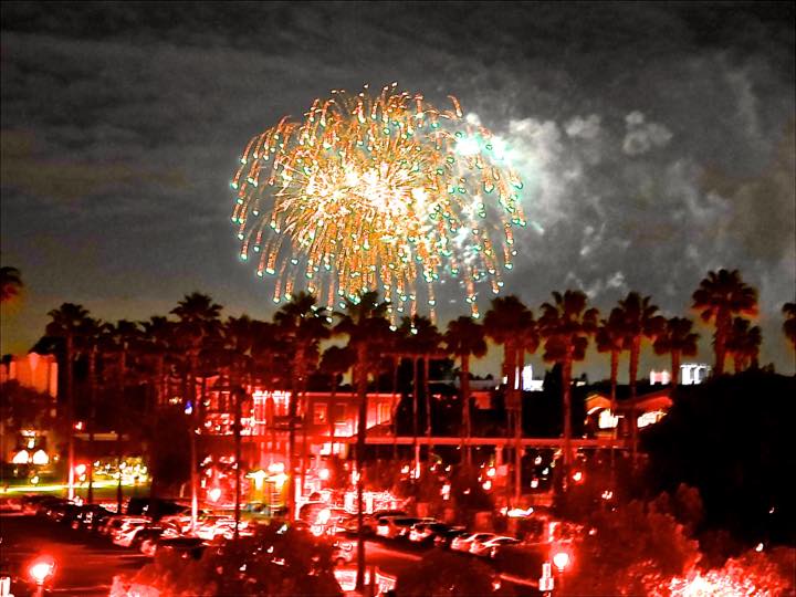 光と音の速さが違うため、ホテルの3Fから見る場合もその場で音楽を流してくれて光に合わせてくれていたので臨場感がありました。