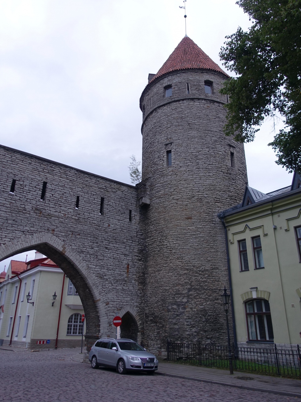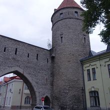 「修道女の塔」は、タリン 旧市街西側の城壁にあります。円筒形でオレンジ色の三角屋根が印象的です。タリンは、城壁の内側の旧市街と、外側の新市街で大きく光景が異なりますが、「修道女の塔」は、旧市街の光景です。塔のすぐ脇にはゲートがあり、ヨーロッパならではの光景が見られました。