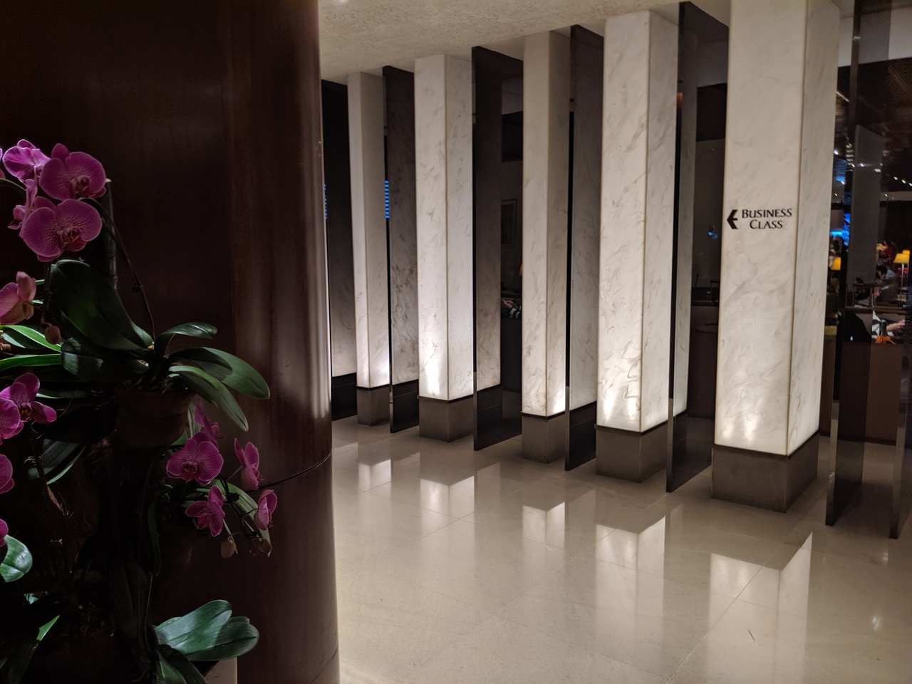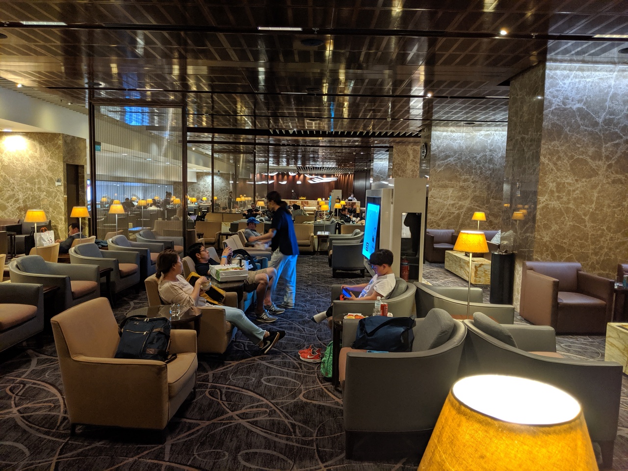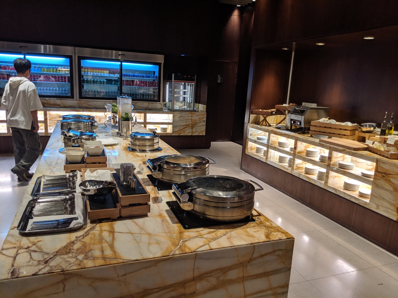 ビジネスクラス乗客限定のラウンジです。バイキングの食事はそこそこあり、飲み物も一通りあります。