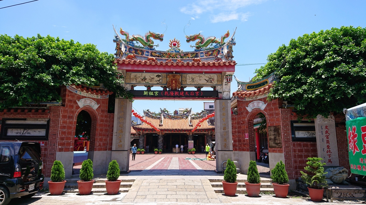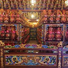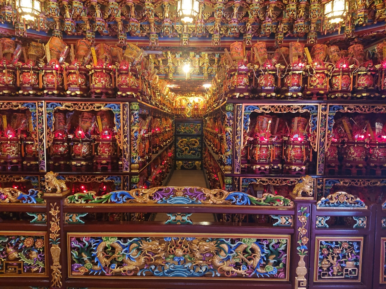 鹿港の北西部に位置し、周辺は飲食店などが点在。とても賑やかな場所に位置するお寺です。門のすぐ前にはコンビニもありました。とても大きなお寺で、参拝者も多く、その参拝者を期待して多くのお店が集まっているような気がします。イルミネーションと見られるライトが多くぶら下がっており、夜はさぞ綺麗なんだろうと思います。