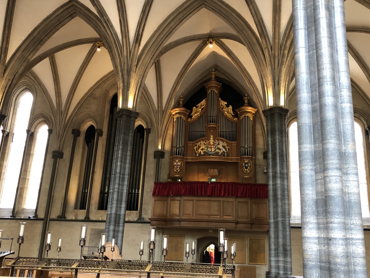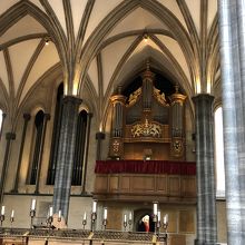 「テンプル騎士団」の彫刻像が印象的ですが、訪問時はパイプオルガンの音色も聞くことができました。