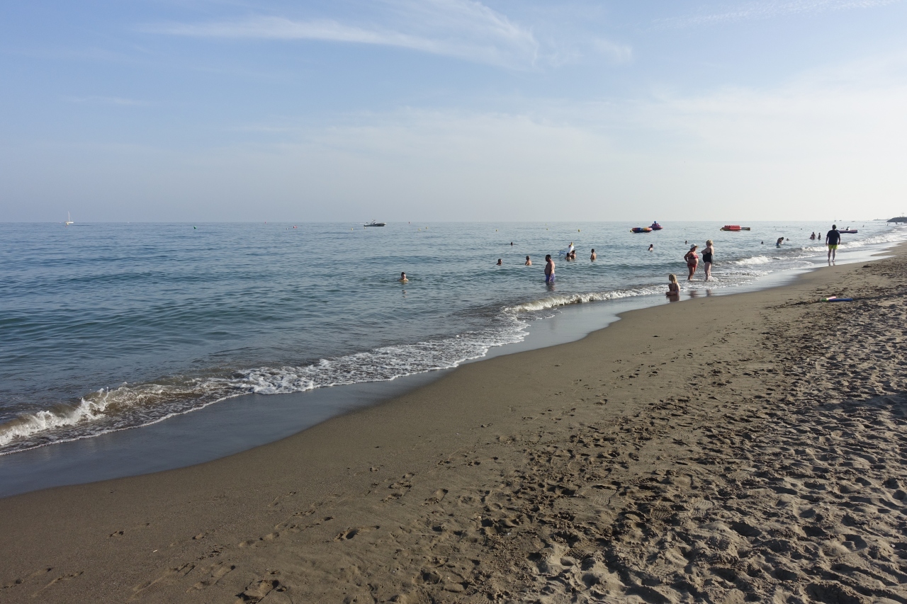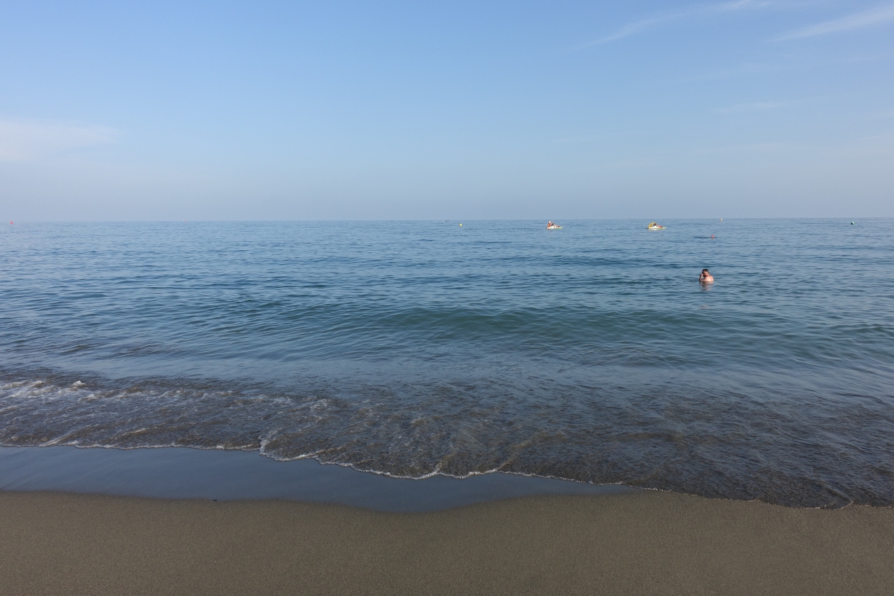 9月中旬はバカンスのシーズンは終わっていましたが、暑い日が続いており海水浴はまだまだ可能でした。水温も普通に入れるレベルです。ビーチは混んではいないけど思ったより人がいたかなという印象。ただしアジア人はほとんど見かけなかったです。砂はやや黒っぽいので、白砂の美しいビーチというのとは違うけど、海水自体はまあまあきれい。茨城や房総の海と同じくらいでしょうか。