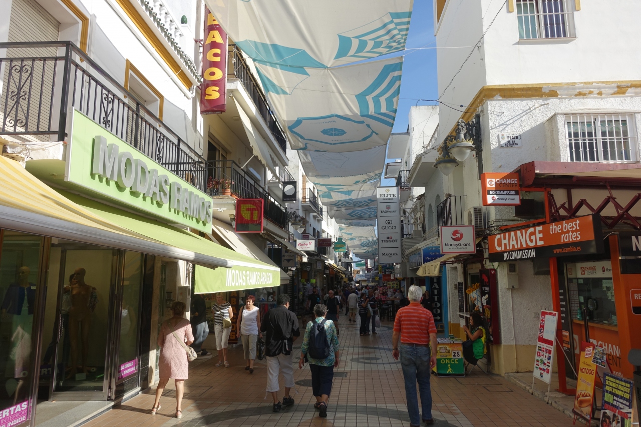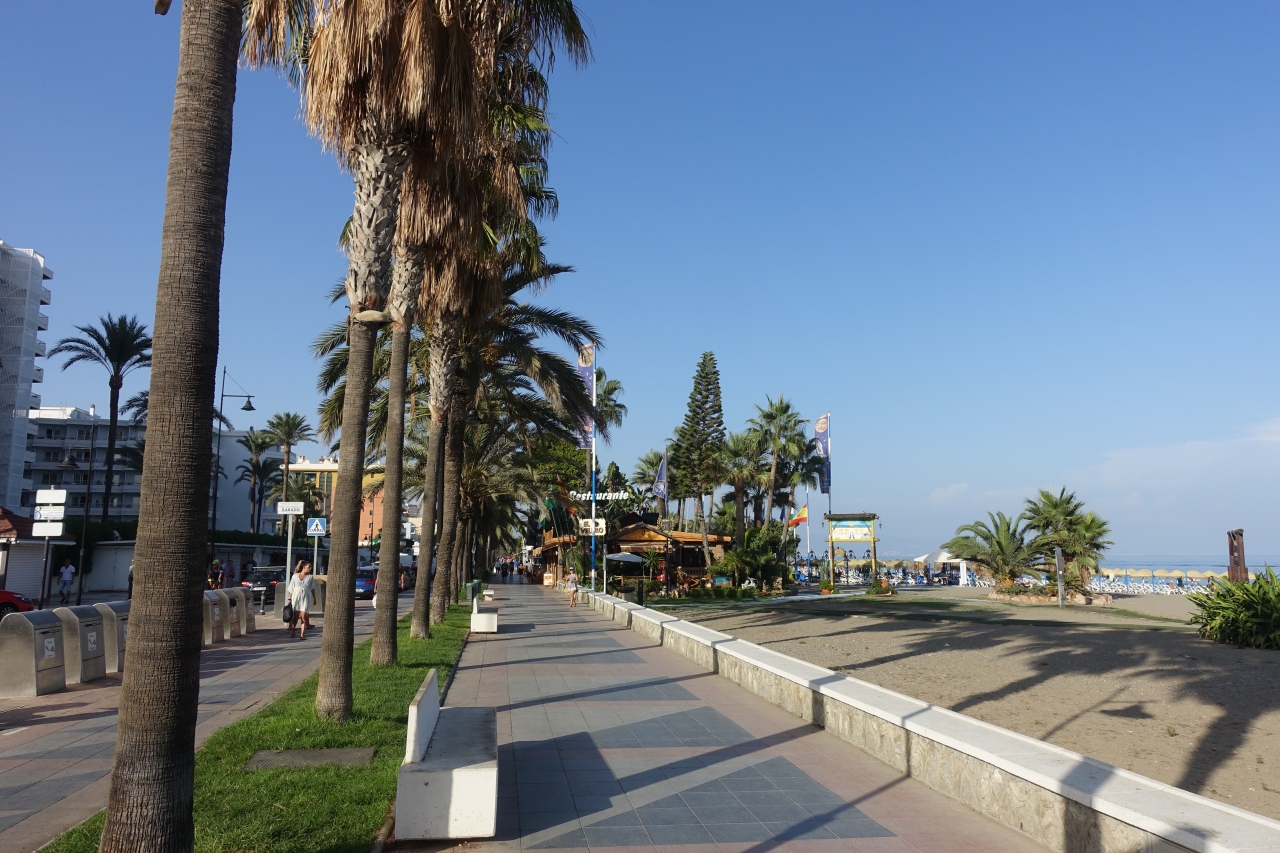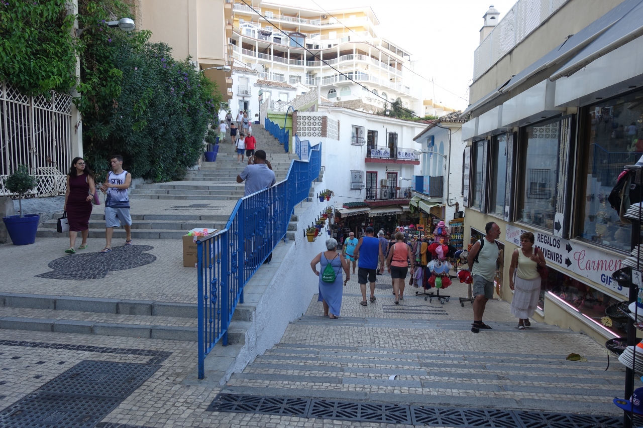 せっかくコスタデルソルに来ているのだし、マラガのビーチ以外にも行ってみようと思い、トレモリノスのビーチにも行ってみました。マラガから半日あれば充分行けてしまいます。駅からはサンミゲル通りや階段の道を下りて15分くらい(帰りは上り)。沿道には観光客向けのいろんな店が並んでいるので飽きずに歩けます。