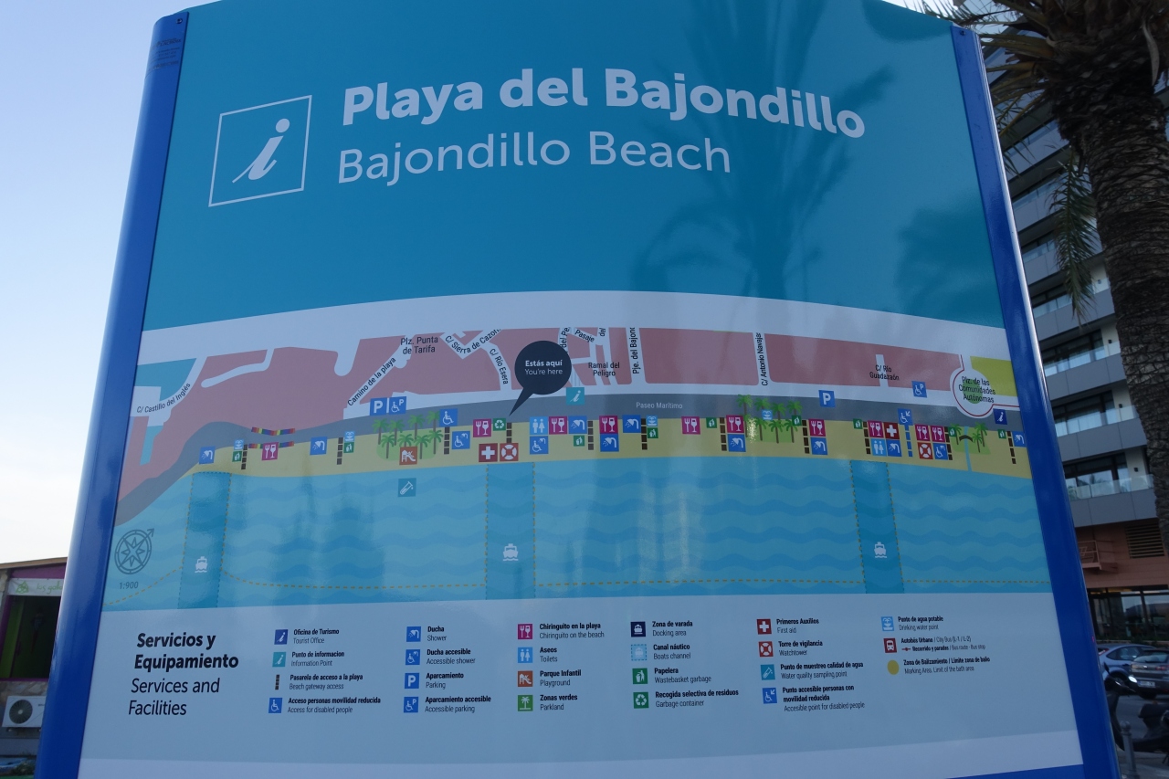ビーチの施設として無料のシャワーとトイレがあります。シャワーは何か所か設置されているのですが、トイレは少なくて案内図の範囲だと2か所だけ。ま、あるだけマシですけどね。サンミゲル通りの散策と合わせて、半日~1日のんびりするのにぴったりです。