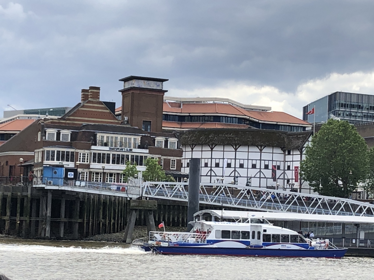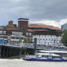 グローブ座があった場所で、シェークスピアの生家の外観をまねた円形の外観が特徴的です。