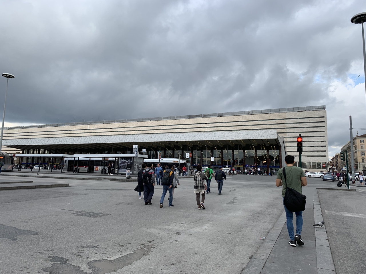 H10ローマチッタホテルに宿泊していたのでテルミニ駅の前にあるバスターミナルからバスに乗って帰りました。テルミニ駅は大きな駅なので観光する時の交通の拠点になると思います。また、バスターミナルの他にもトラムの停留所も目の前にあります。