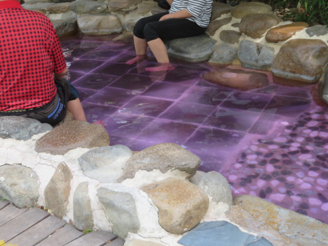 大田駅からは地下鉄を利用して儒城温泉駅に来ると便利です、駅からすぐ温泉ホテルがある市街地に、かなり前に温泉施設で入浴しましたが今回は横に長い広い公園内にある無料の足湯に入りました、最初足を洗ってから入りました、温度は丁度良かったです、多くの市民が足を浸けていました、市民の憩いの場のようでくつろいでいる人が多くいました。