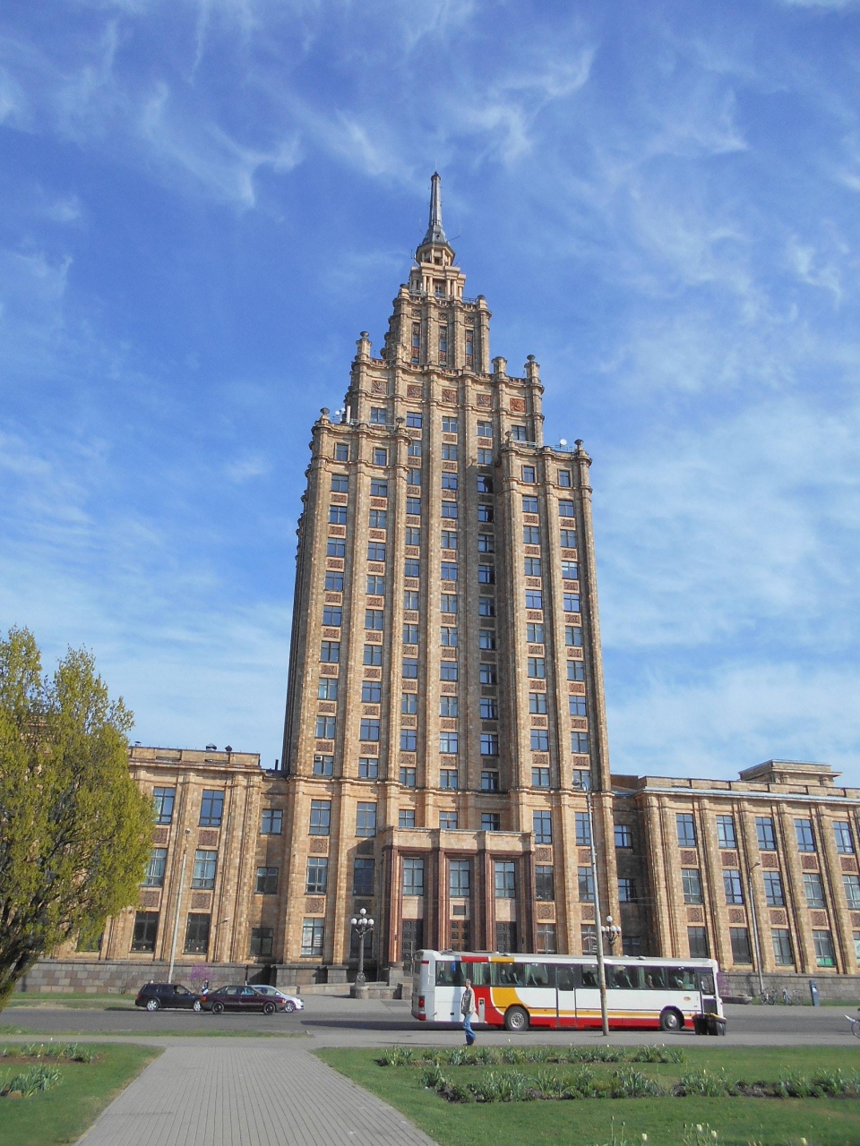 ラトヴィアのリーガの旧市街の南側にある「中央市場」のさらに南側にある大きな「科学アカデミー」。