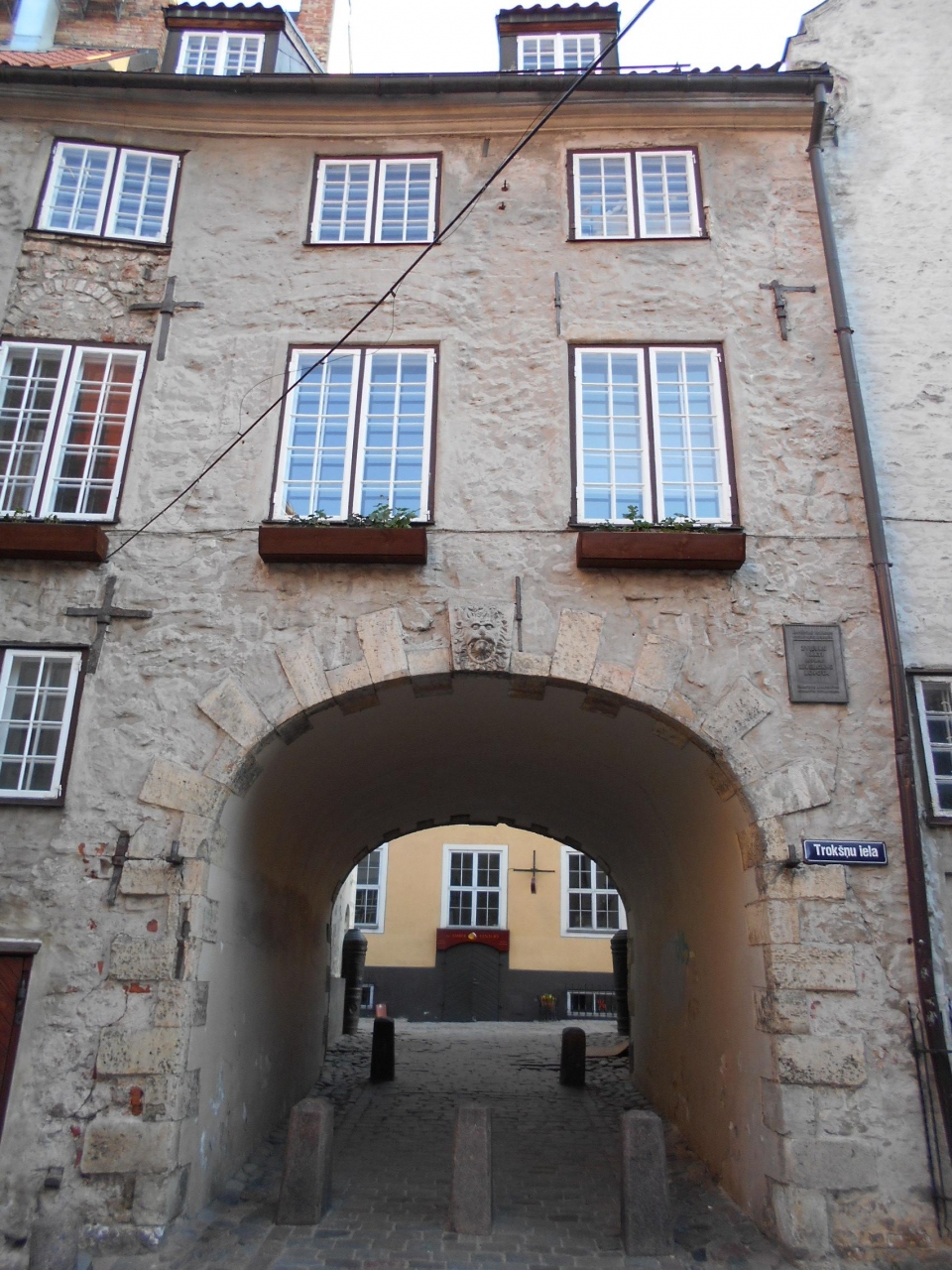 ラトヴィアのリーガの旧市街の北側、城壁の近くにある現存する唯一の城門「スウェーデン門」。