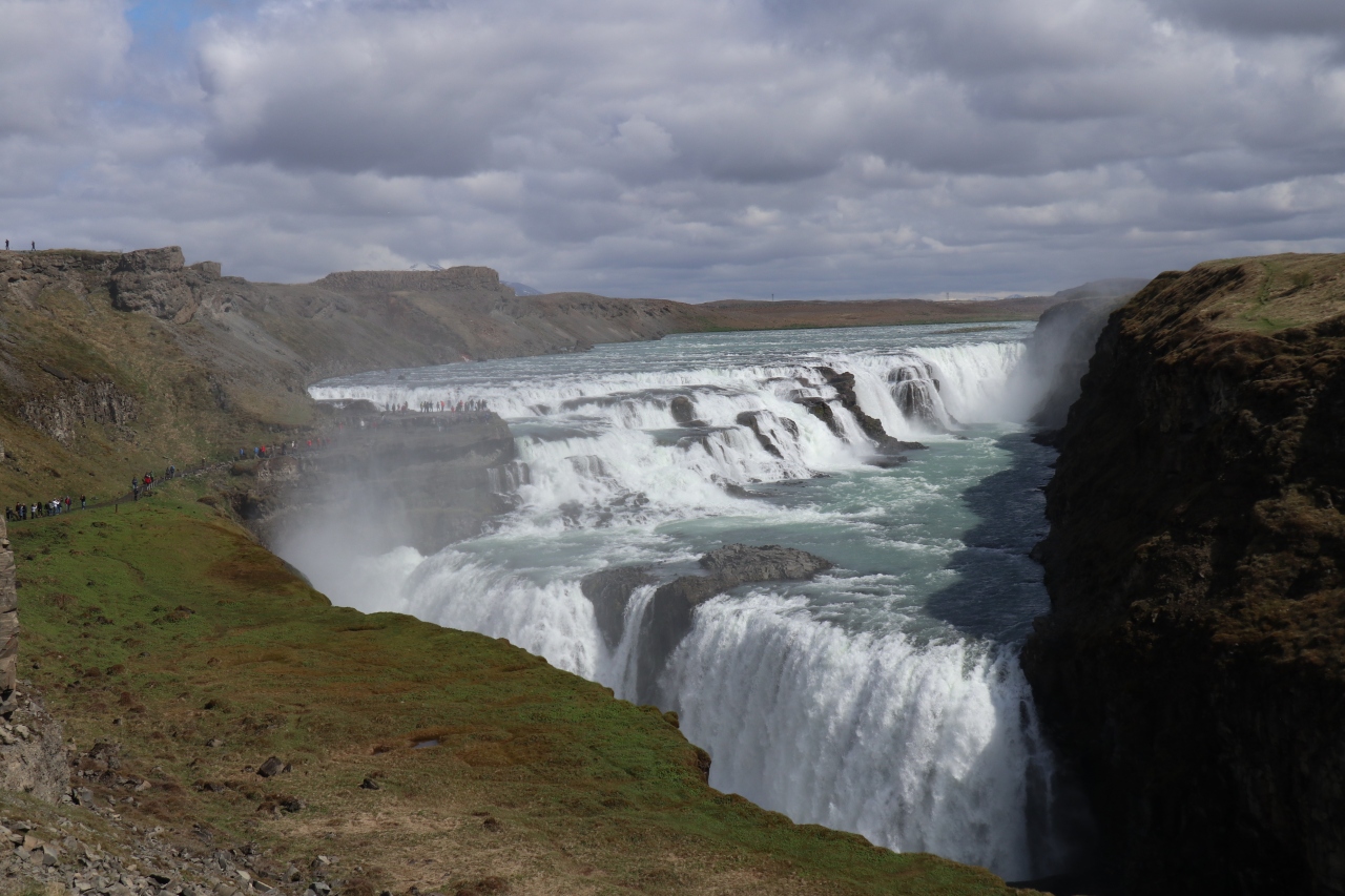 ゴールデンサークルのうちのひとつ。近づくと轟音が聞こえ、すごい迫力でした。滝が何段かになって落ちていきます。上段まで行けますが、下段からの眺めもきれいでした。駐車場から遊歩道を通って滝の近くまで行けますが、近くに行くと水しぶきで少し濡れます。