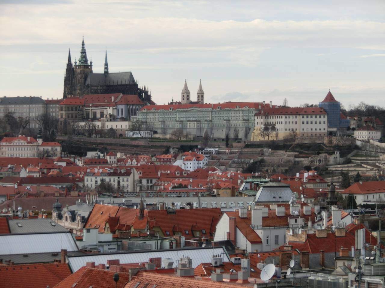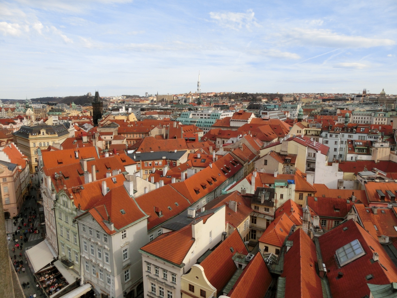 プラハ城からの眺めとはまた違った市街の赤い屋根の街並みを見ることができます。