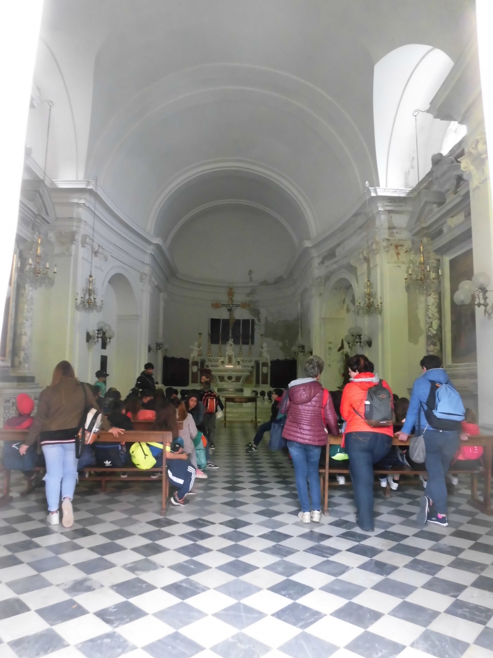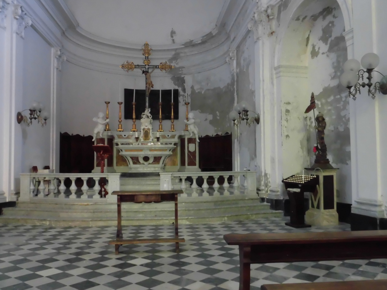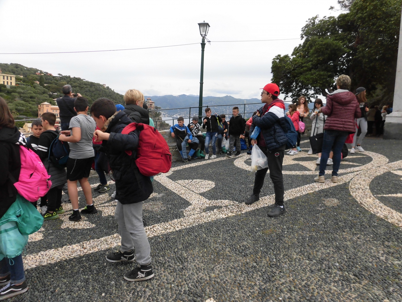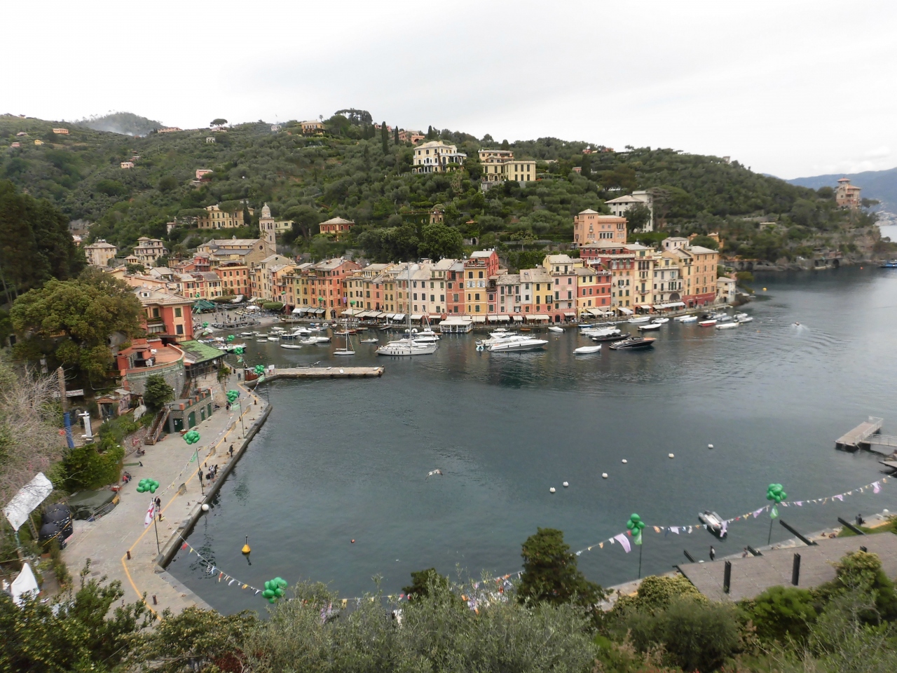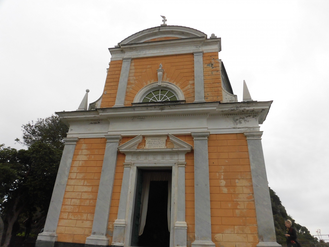 ポルトフィーノの海岸から先のほうに見える教会です。 山道を登っていきます。 途中、美しい海岸が見えてきます。 教会自体は小さくて、内部は白くシンプルでした。 ここからポルトフィーノの湾側と外海と両方の景色が見えます。 どちらも美しかったです。 ちょうど遠足(かな?)の子供達と一緒になり、楽しく見学しました。