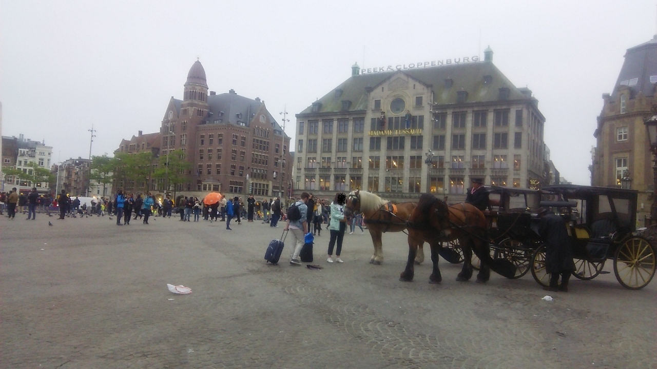 扇状に運河がある市街の中心にあり、昔ダムが作られた場所だからダム広場とのことだが、石畳をぐるっと歴史的な建物が囲んだ広場。特に「これが中心となる建物」という感じがなく、ワサワサした雰囲気。曇っていたためか、今一つぱっとしない印象となってしまった。