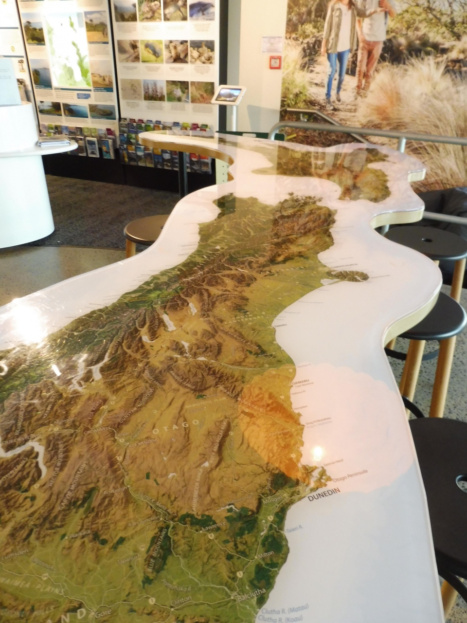 館内中央にはニュージーランドの北島と南島の航空写真がプリントアウトされた大きなテーブルが有ってこのテーブルの上の地図で場所を確認しながら旅行計画を練るのが楽しいかも・・・