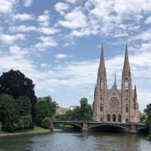 内部を見ていると信者の方が、大戦で建物が破損されたことステンドグラスは一部しか残っていないことなどを説明してくださいました。