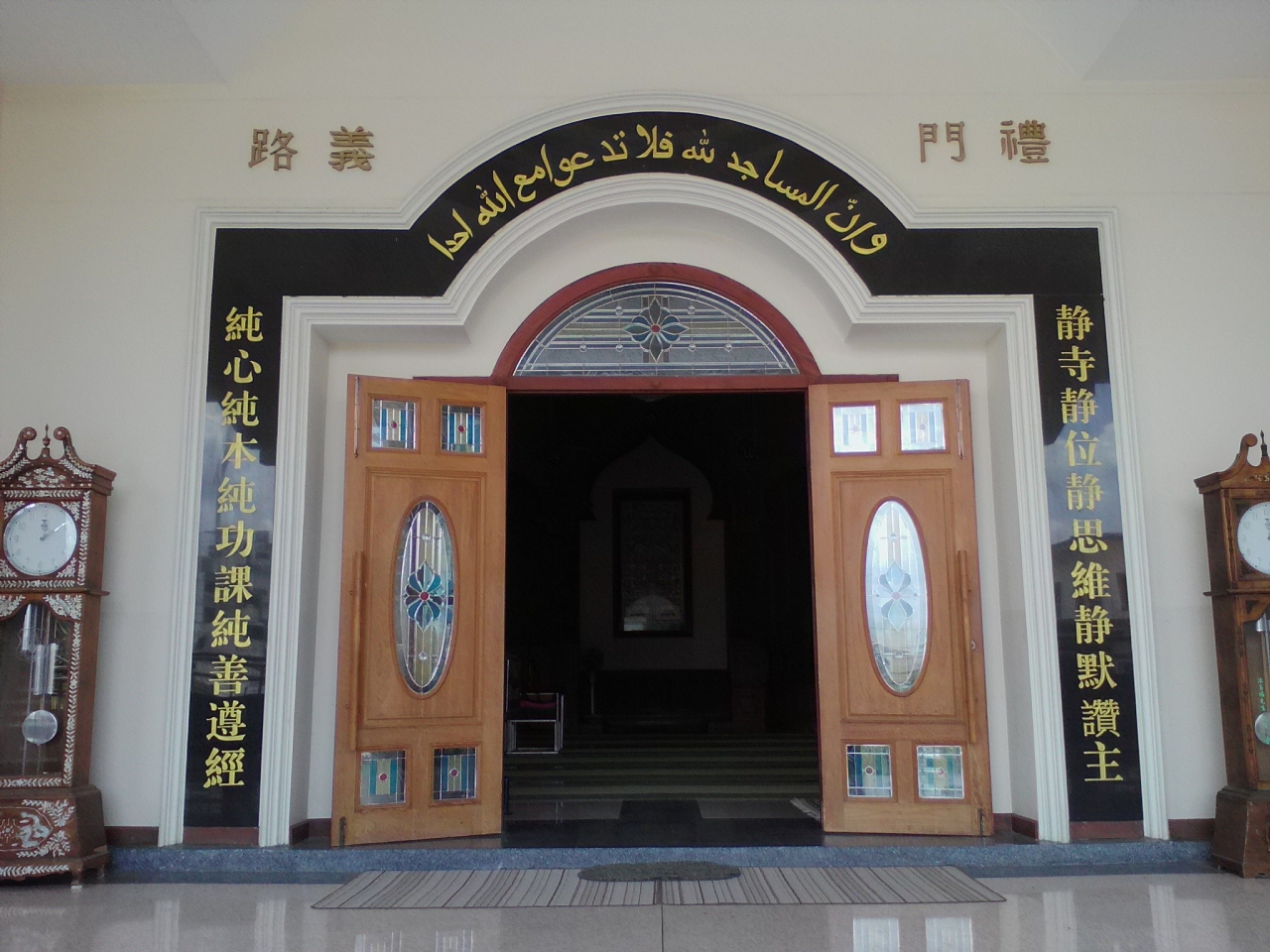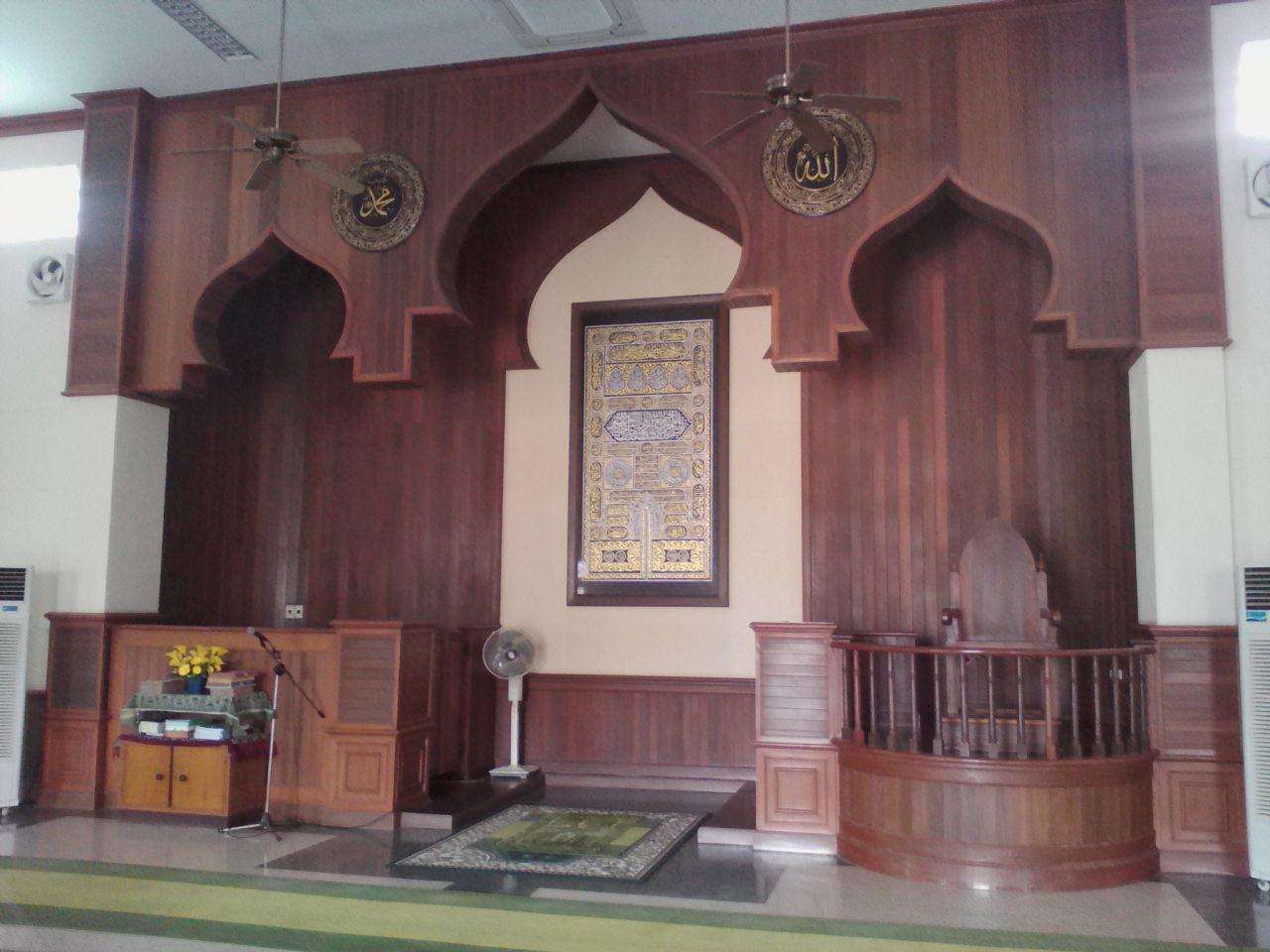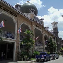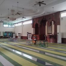 周りの建物とは一線を画す異質さを漂わせています。タイの田舎町にあるモスクとしてはかなり立派で荘厳ささえ感じられました。入口を入ったところにいたモスリムの方に声をかけ、内部(上階)の礼拝室に入る許可をいただきました。上る階段も制約があるようなので注意が必要です。礼拝室は思ったより狭く、特別な雰囲気はあまり感じられませんでした。