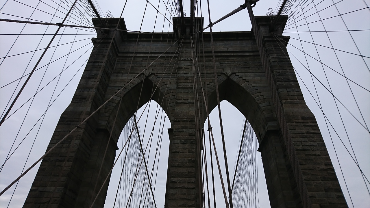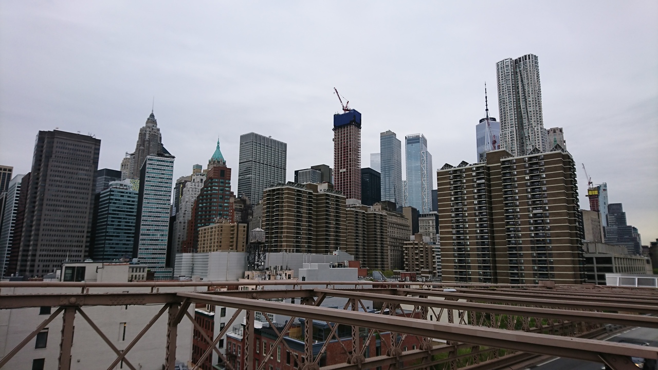 マンハッタンとブルックリンを結ぶ橋で、のんびり歩きながら周りの景色を楽しむことができます。マンハッタンから歩き始めると、途中右側に自由の女神も小さいながら見ることができます。橋のすぐ近くには高速道路?が走っていて、それも絵になります。