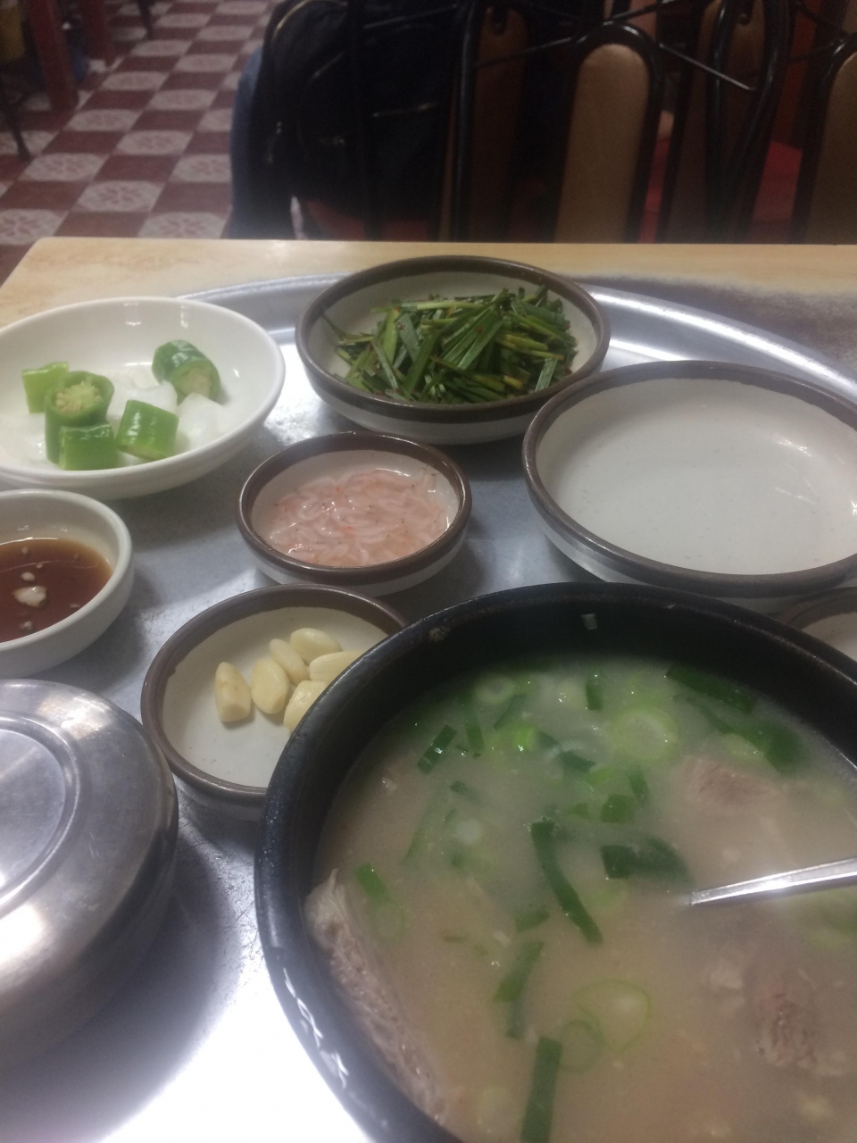 テーブルにキムチが入った壺が置かれておりキムチ食べ放題ですが、ここのキムチも辛すぎずに美味しいです。