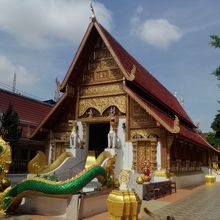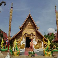 町の北側、コック川近くにある古刹。本堂正面入口の破風の造りが美しい曲線を描いているのが特徴です。内部に置かれている仏像はチェンマイにあるワットプラシンとそっくりなもの。兄弟寺と言われる所以です。敷地内にいくつかある菩提樹の根本にはさまざまな仏像が並べられています。