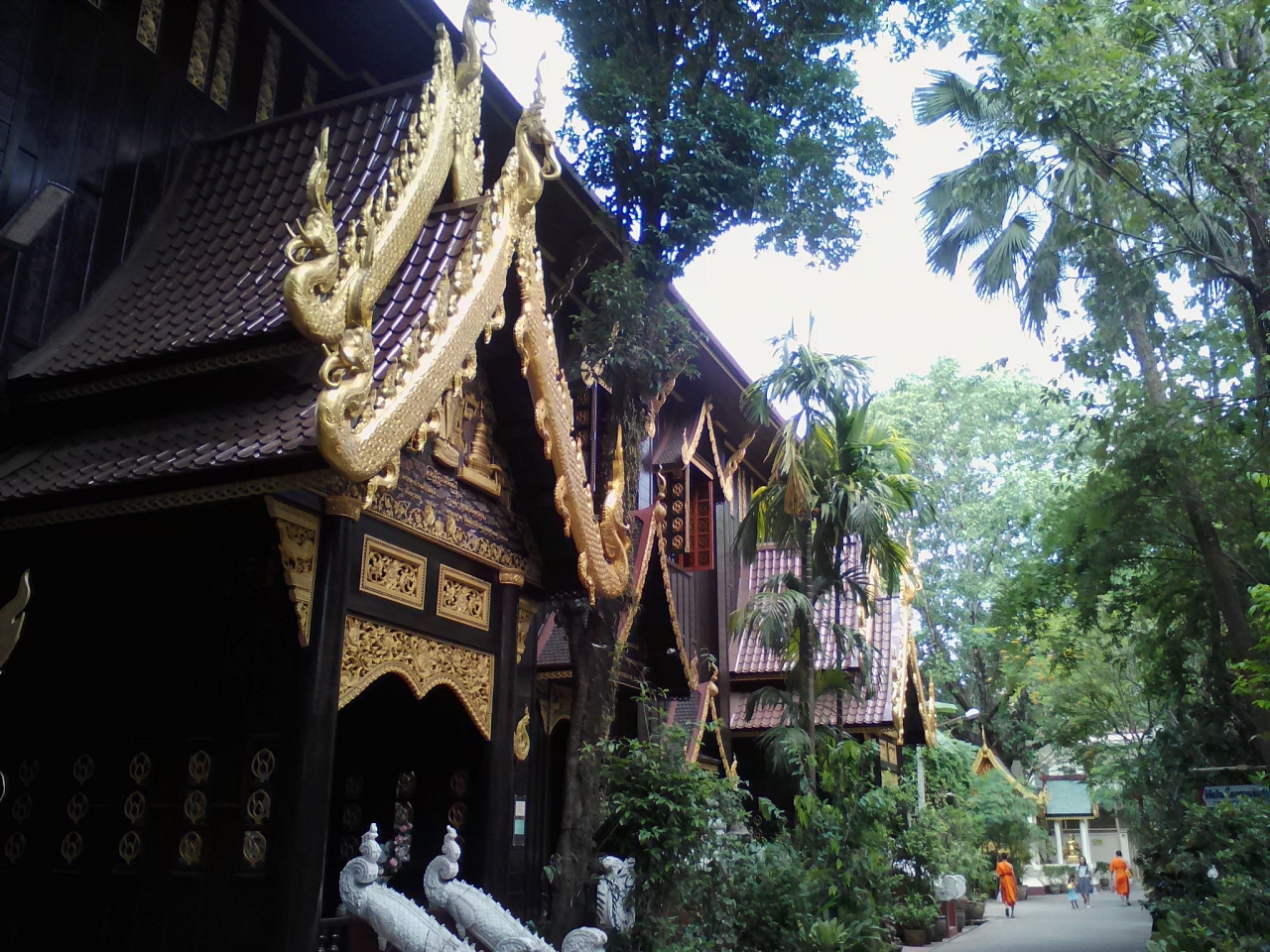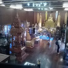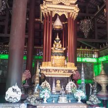 名前のとおり、バンコクにあるワットプラケオと縁のあるお寺です。なんとバンコクのエメラルド仏もかつてこの寺に納められていたようです。見どころのエメラルド仏だけでなくお堂の中もエメラルド色の灯りが施されていてなかなかおしゃれな“演出”がされています。この寺でもう一つ外せないのが博物館。逆にモダンな造りにも見える黒色の重厚なラーンナータイ様式で建てられています。内部には寺院に縁の仏像などが展示されています。