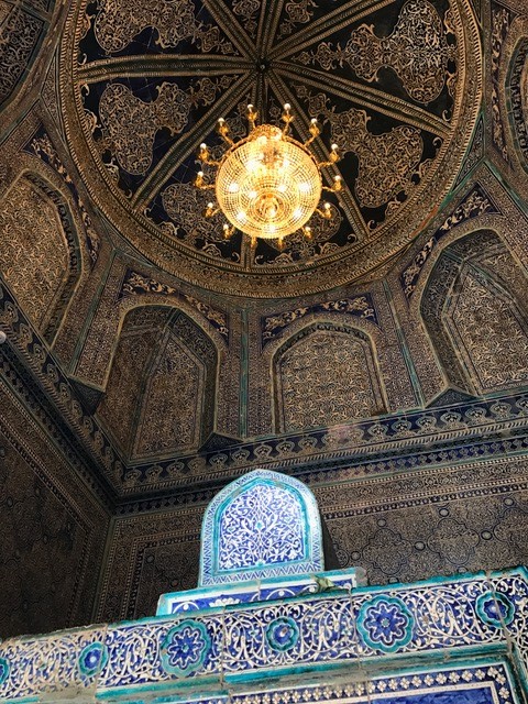 イチャン・カラの南の方にあり、ヒヴァの聖人としてたたえられるパフラヴァン・マフマドの廟です。共通チケットでは入れず、別にチケット(2019年5月時点で10,000スム)を購入して入ります。中では普通にお祈りをされていて、神聖な場なんだなと改めて感じたので、念のため確認をしてから写真を撮らせていただきました。