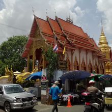 市場の一画に埋もれるようにあるお寺です。敷地内から直接市場に行ける出入口もあるほど。市場の喧騒に包まれ、より庶民の生活に根差した感じはありますが、その分お寺のキリッとした厳かさは感じられないかなと思います。