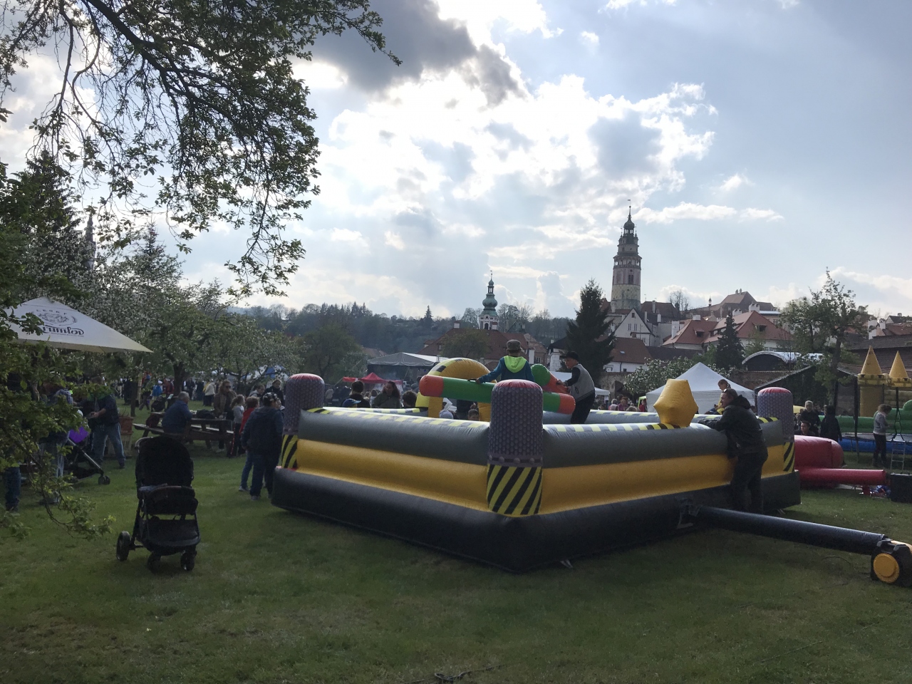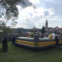 エッゲンベルグ醸造所の隣にあり、ヴルタヴァ川沿いにある遊歩道から行くことができます。芝生が広がる大きな公園でした。よくイベントなどに利用されているようで、この日も、お祭りが開催されていて賑やかでした。
