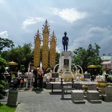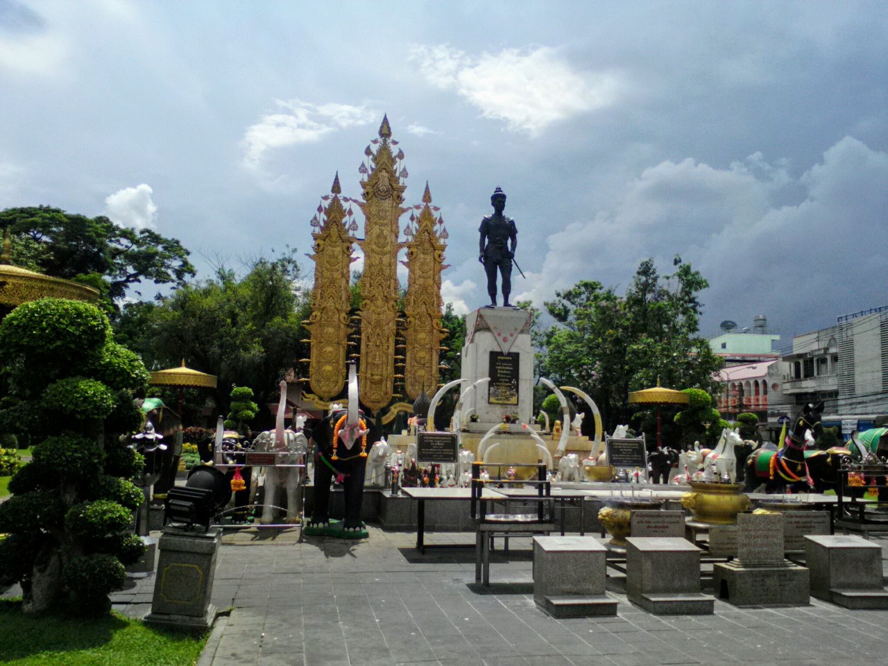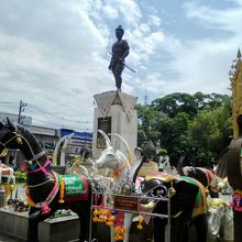 20世紀初頭までタイ北部を治めていたラーンナータイ王国の建国者がメンラーイ王です。像の前には祭壇が設けられ、時おり参拝者が花や線香を供えていきます。大小様々な馬や象の置き物は尊敬や願掛けの意味が込められています。町の北西の外れにある「ワット ドーイ ガム ムアン」にある仏塔にはメンラーイ王の遺物が納められています。