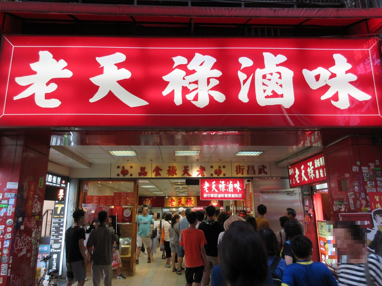 MRT西門町界隈を散策していた際に、大変な行列を見かけたので立ち寄ったのがこちらの「老天禄食品」です。上海など大陸でも見たことがありますが、鶏の脚やら嘴といった日本人には馴染みのない食材が並んでいました。渋谷のような雰囲気の西門町で、こうしたお店が残っていて驚かされました。
