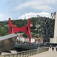 ビルバオのグッゲンハイム美術館の上に架かる橋です。ビルバオ空港からバスに乗ってビルバオ市内へ来るときにグッゲンハイム美術館のすぐそばのこの橋を渡りました。グッゲンハイム美術館からスビスリ橋まで川辺を歩いて行くときに下からこの橋を眺めました。芸術的な赤い橋です。