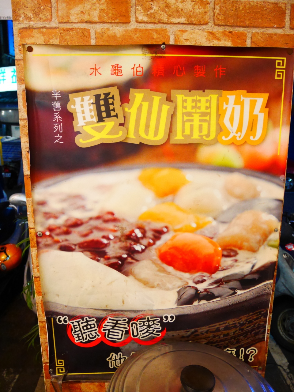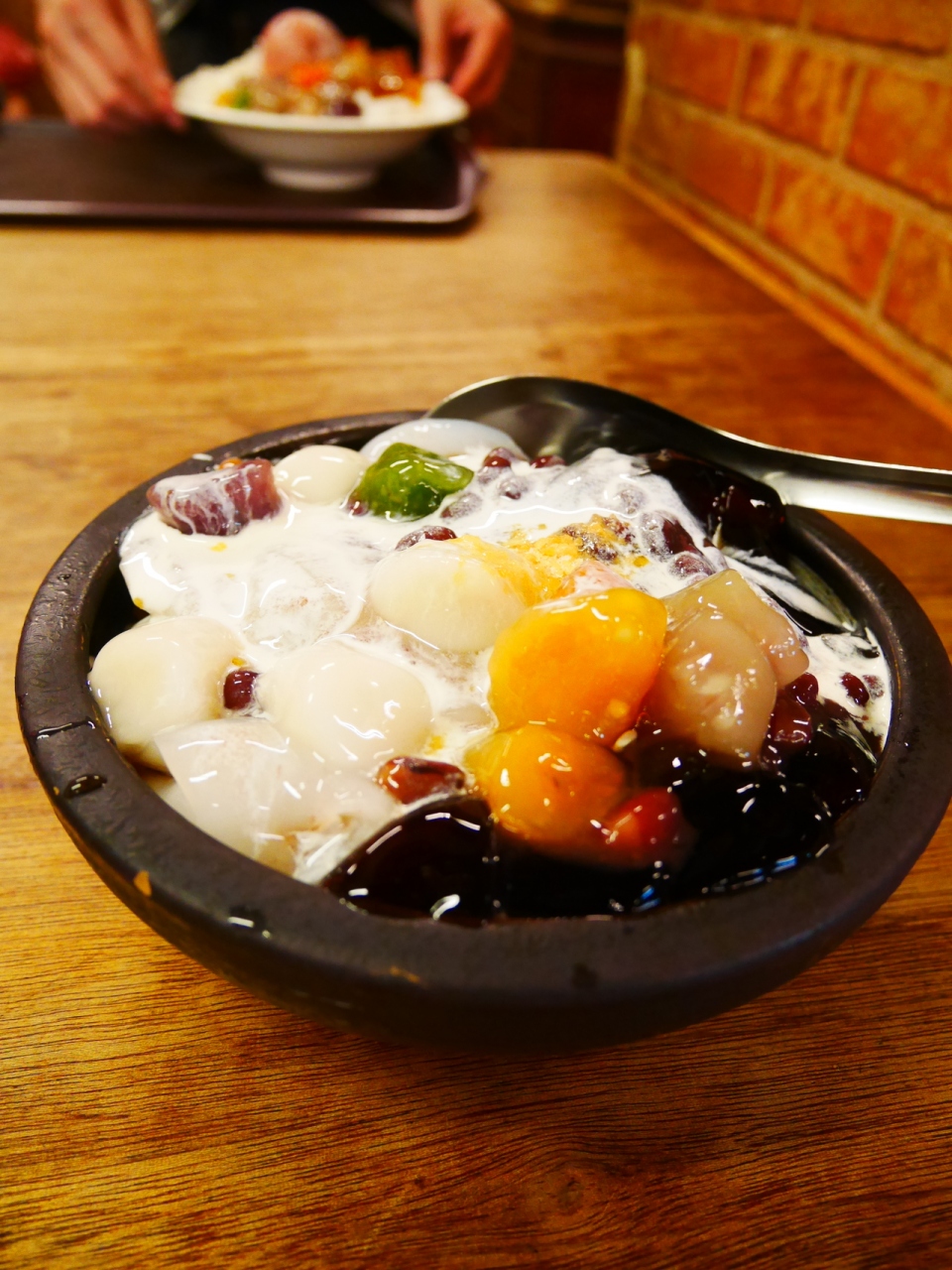 私は一番人気らしい「雙仙鬧�垢」という物を注文しました。杏仁豆腐、仙草ゼリー、芋圓などが器の中に色々盛られており、ポーションミルクと氷がかかっています。一度に色々な味を楽しめますし、食べ進めるごとに変化があってとても美味しかったです。甘さもちょうど良い具合で、男性にも食べやすいと思います。