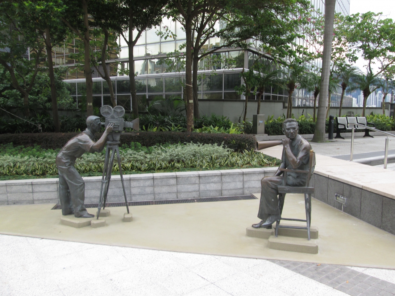 ガーデン オブ スターズに映画撮影の銅像がありました。ブルース・リー、ジャッキー・チェンといった本物のハリウッドでも有名な香港スターのアクション映画のみならず、個性豊かな俳優や作品を輩出しているので、アジアのハリウッドであるとを再認識しました。メガホンを振る監督に音響&照明スタッフの銅像がリアルでした。