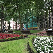 ビルバオのアバンド駅の近くのサン・ビンセント・アバンド教会のそばに小さいですがとても素敵な公園がありました。花壇が綺麗に整備されていて、そこに様々な種類の花が植えられていて、とても綺麗でした。観光でかなり歩いた疲れをこの公園で少し回復させてもらいました。