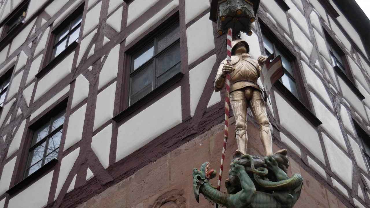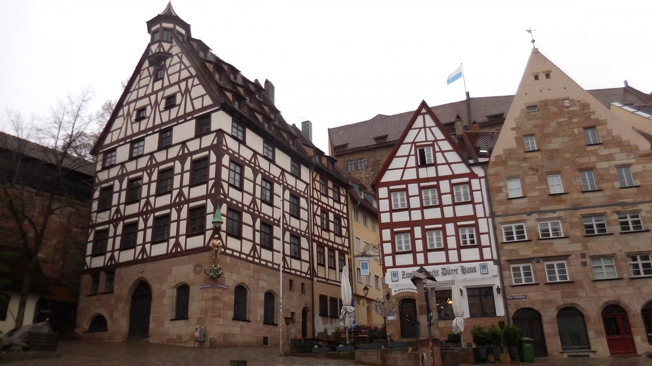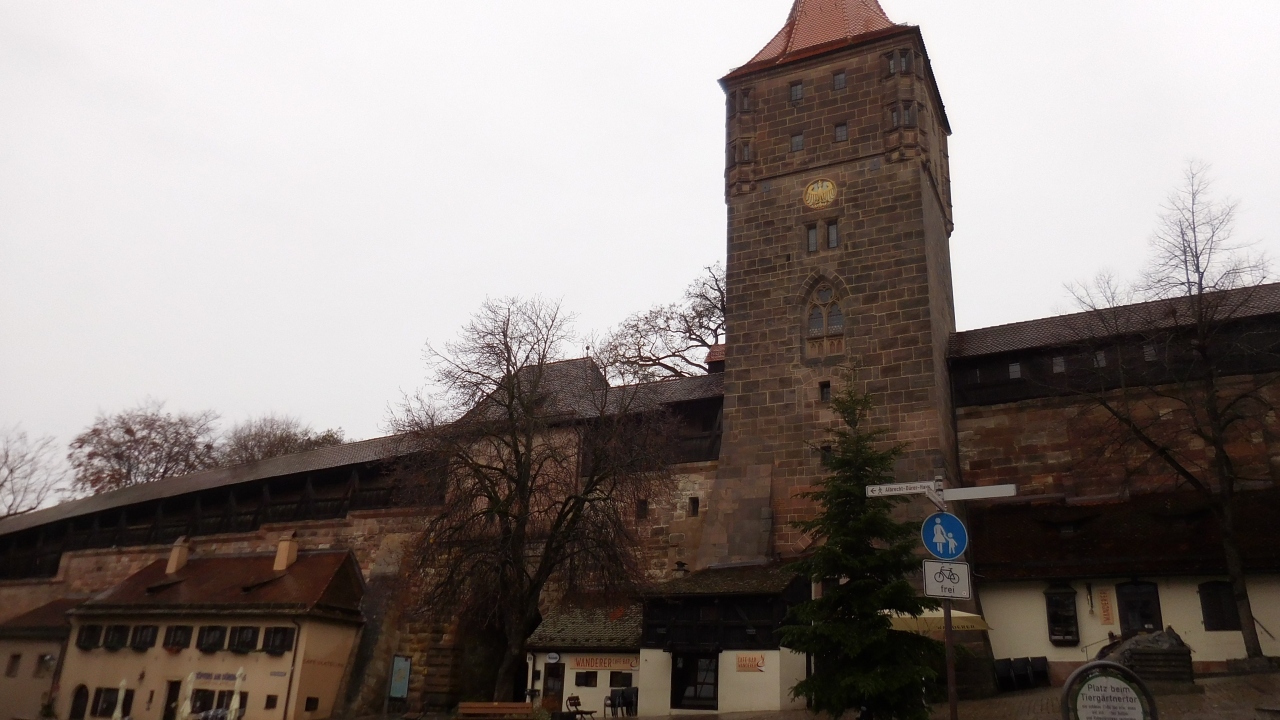 城から続くレンガ色の城壁に付属する見張り塔ティアガルトナー門があり、周囲に美しい木組みの家が建っておりドイツらしい風景が凝縮された場所である。ここからデューラーの家の前を通ってヘンカーシュテークに至る道はニュルンベルクで最もお気に入りの散歩道である。
