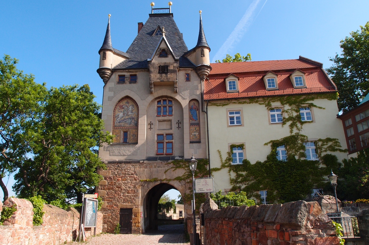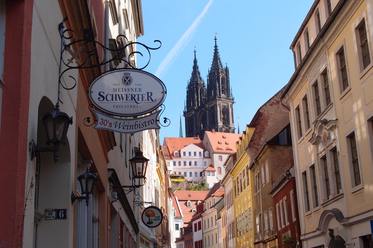 マルクト広場からアルブレヒト城に向かう石畳の坂道です。通りの両側にはみやげ物店やレストランが並んでいます。城門に行くには途中から急な階段を上っていきます。この階段が結構きついですが、城門前にマイセンの街を一望できる展望台がありました。