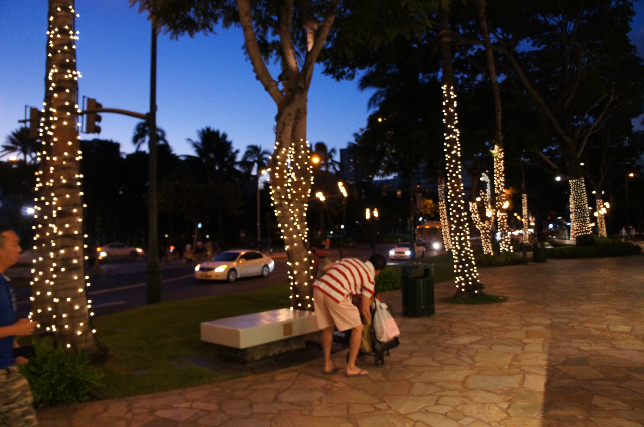 ワイキキビーチ沿いの通りです。この通り沿いにはリゾートホテルやレストラン等が立ち並んでいました。メイン通りなので、人通りも多く活気がある雰囲気でした。ワイキキビーチで遊びながらちょっとランチをしたりするのにも近くて便利です。