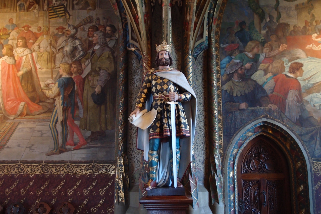 城内はかなり広く歴史館のようになっています。アルブレヒト強王の命令で白磁器の製造に成功した錬金術師ベトガーの部屋には、失敗と成功の2場面の壁画が描かれています。