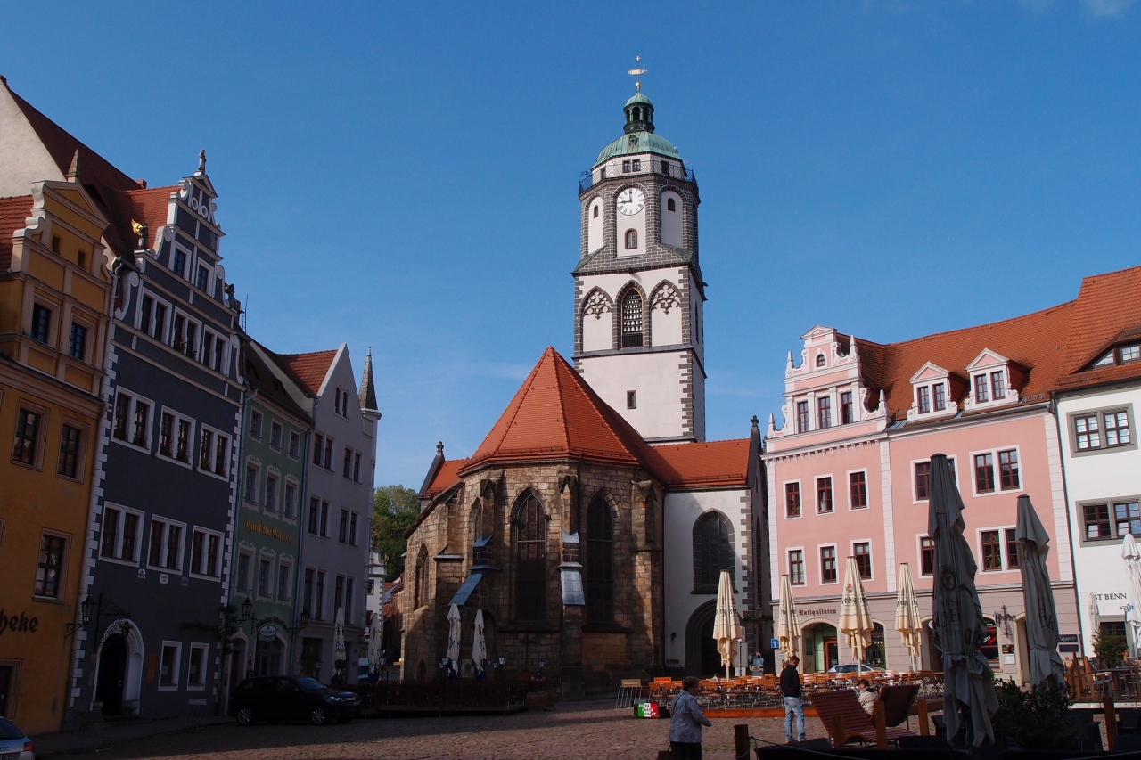 マイセンのマルクト広場に建つ外観の美しい教会です。塔に37個のマイセン磁器の鐘が取り付けられ、1日6回異なった曲を奏でるそうです。
