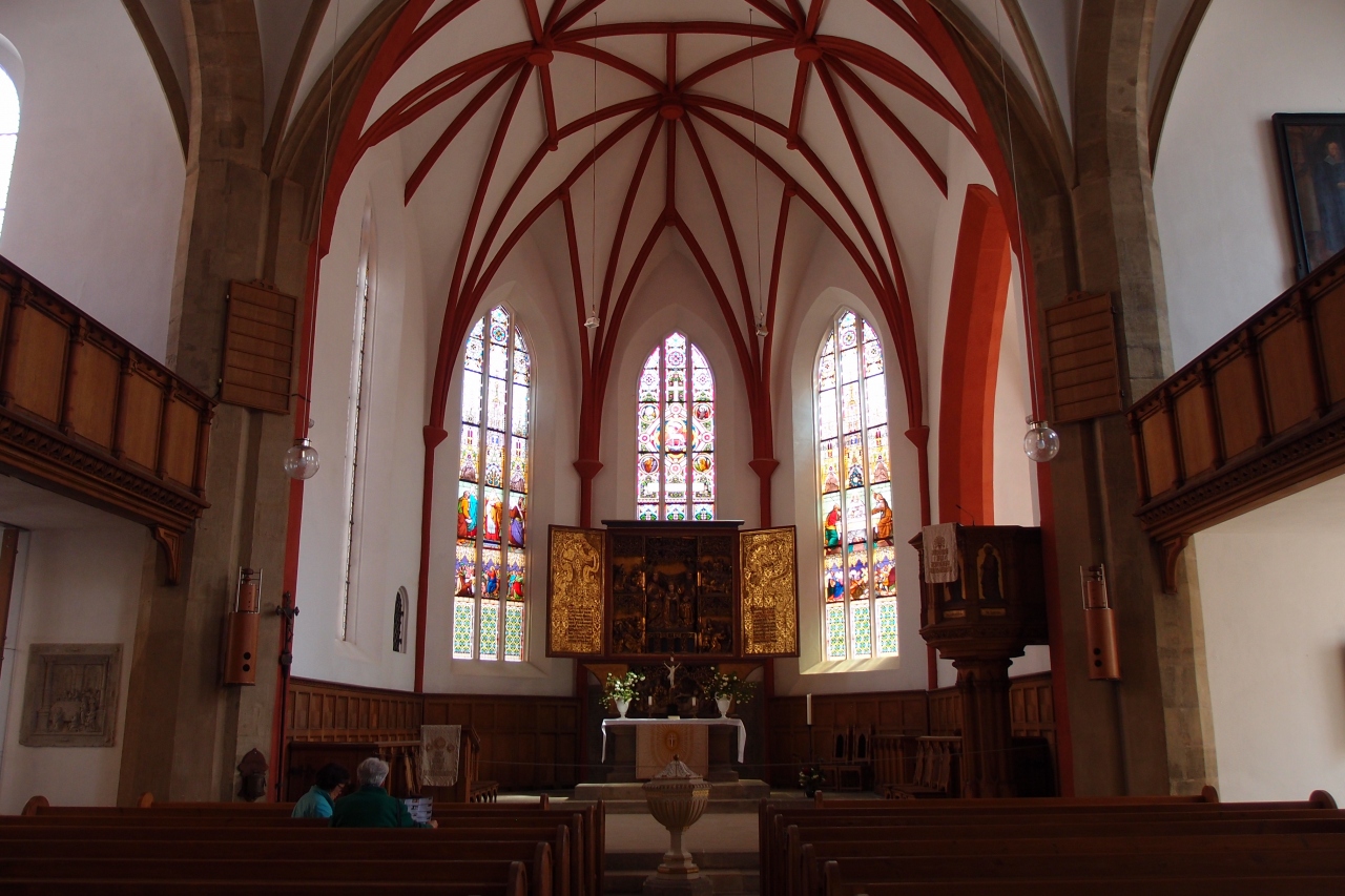 教会の内部は明るく開放的な雰囲気でした。日本語のパンフレットも置かれていました。