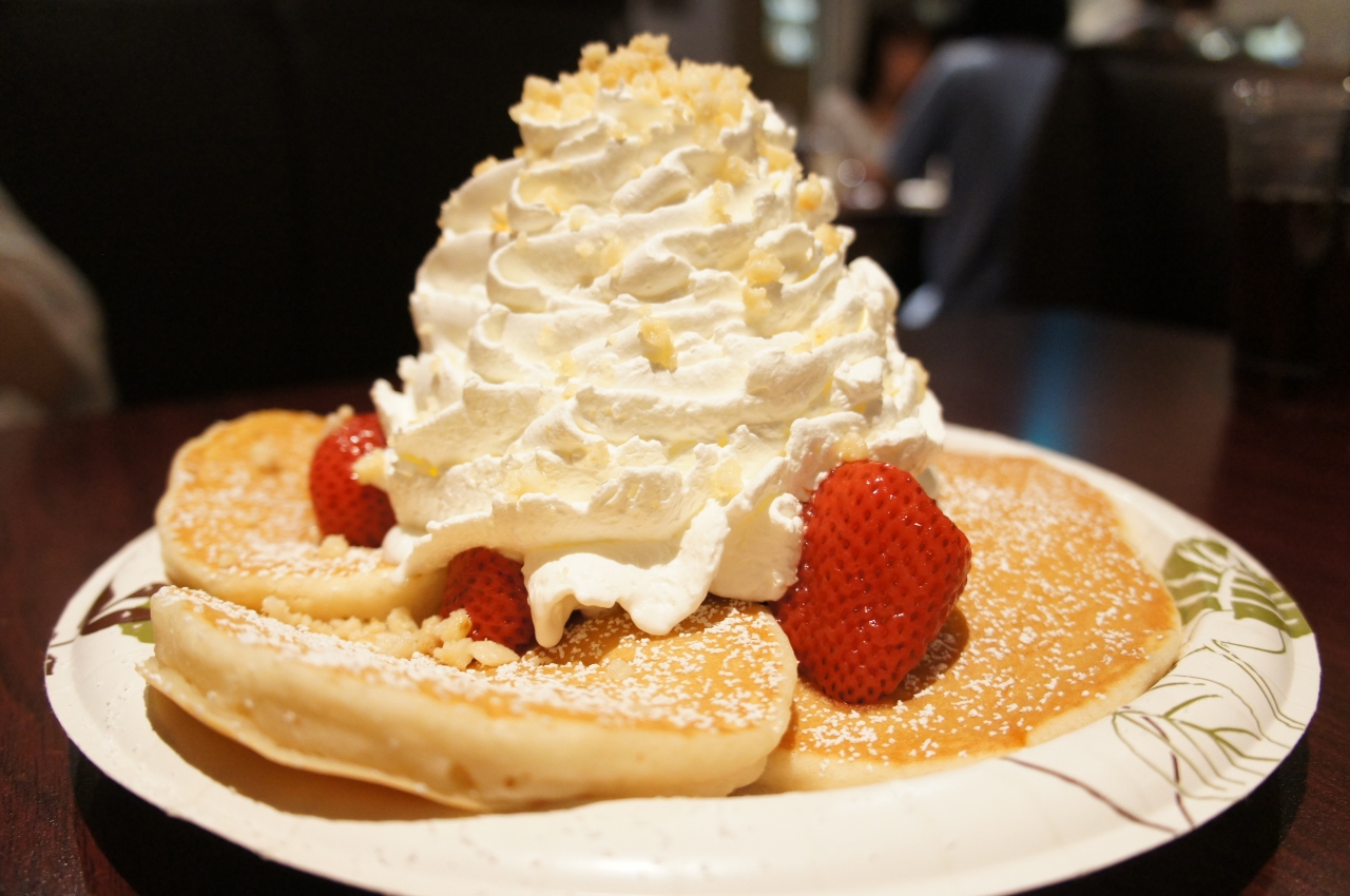 日本でも大人気のパンケーキ屋さんです。パンケーキということで昼間は結構混んでいるようですが、夜の時間帯に行ったのでスムーズに入店できました。クリームたっぷりのパンケーキはボリュームがあっておいしかったです。また、他のメニューもあってオムレツもいただきました。