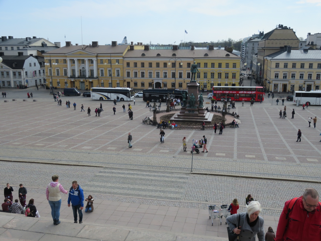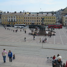 ヘルシンキ大聖堂の前にある広場でとてもひろいです。通りに面したところには数多くの観光バスが止まっていますし、アイスクリームなどの屋台もありました。観光客、地元の人が大聖堂の前で思い思いの時間を過ごしている広場でした。