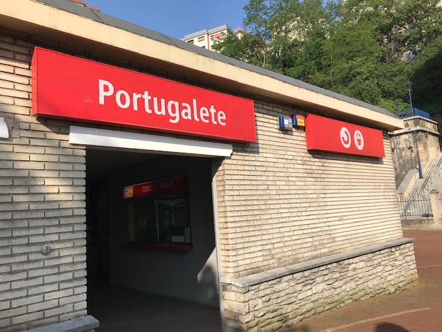 ビルバオ市内から地下鉄でビスカヤ橋へ移動しました。 ビスカヤ橋 のゴンドラで対岸へ渡りました。またゴンドラで対岸に戻るのも何ですし、このまま少し歩いてスペイン国鉄でビルバオ市内へ戻ることにしました。ビスカヤ橋から川沿いを歩いて10分ぐらいで到着する小さな駅でした。