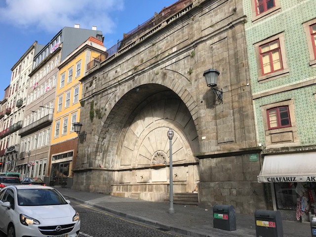 クレリゴス教会からポルト大聖堂へ向かって歩いて行く途中で見つけました。大きな半円形のアーチをしていて、近ずいてみると噴水でしたが水は出ていませんでした。こんな面白い形の噴水を見るのは初めてでしたが、この形だともし水が出ていたとしてもそんなに量は多くないだろうなと思いました。