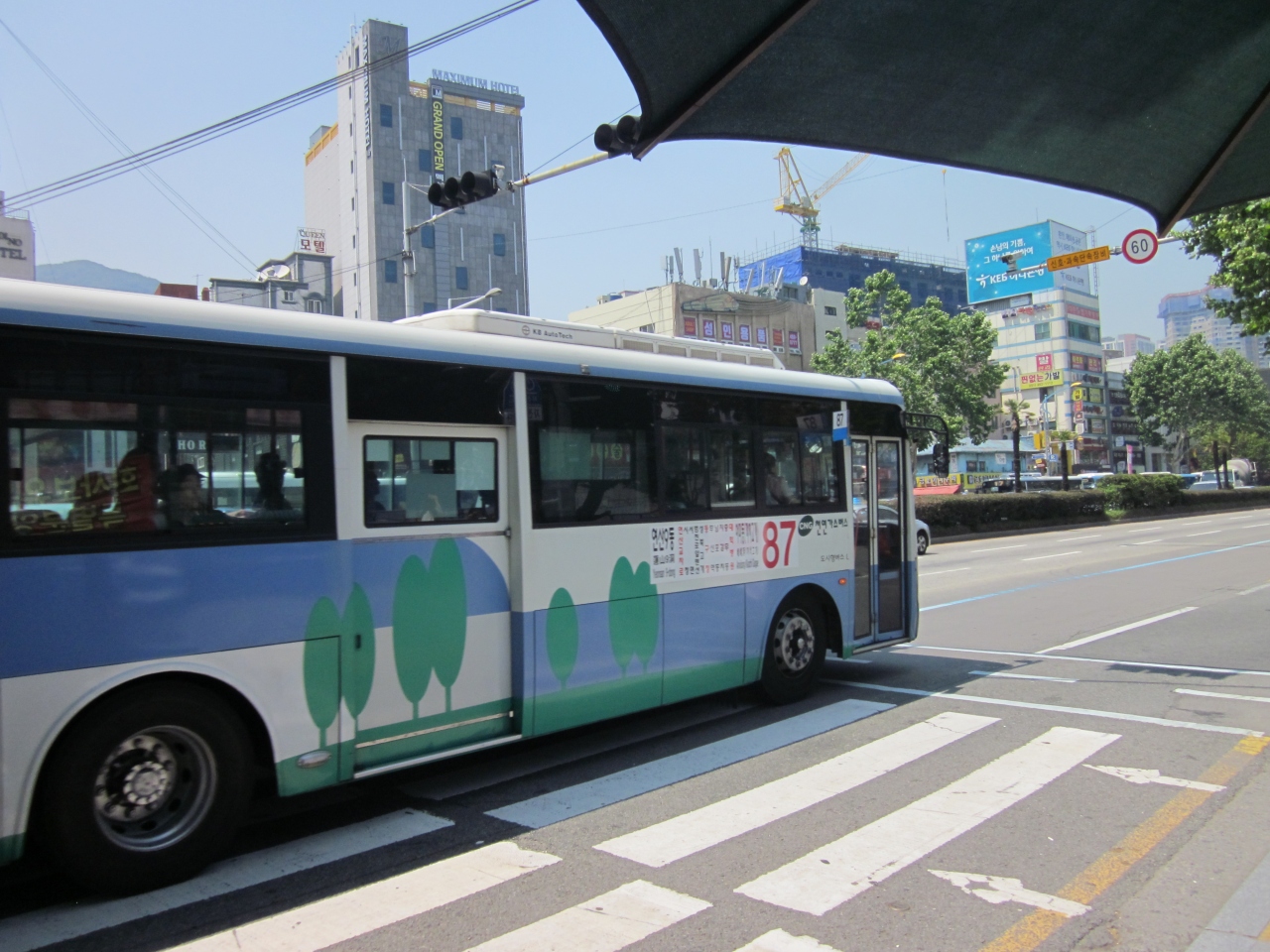 釜山市内を歩いていると、沢山のバスを見かけました。南浦、西面、海雲台など、主要のエリアに止まるバスは、日本語の表記もあり利用しやすいと思います。