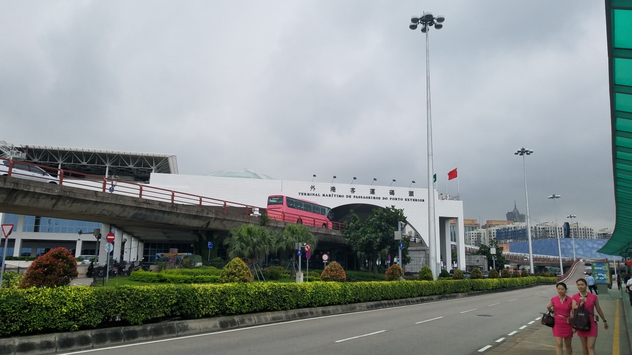香港からの日帰りマカオ、ターボジェットで利用しました。ターミナルは3階建ての旧い作りで大きくありませんが、お土産、飲食店も入っています。ここから市街地までは車で10分足らずですが、ホテル行き無料バスが頻繁にあるので利用しました。到着フロアから地下歩道でバスターミナルまでは直ぐです。到着階には怪しげなタクシー客引きがいるので注意して下さいね。