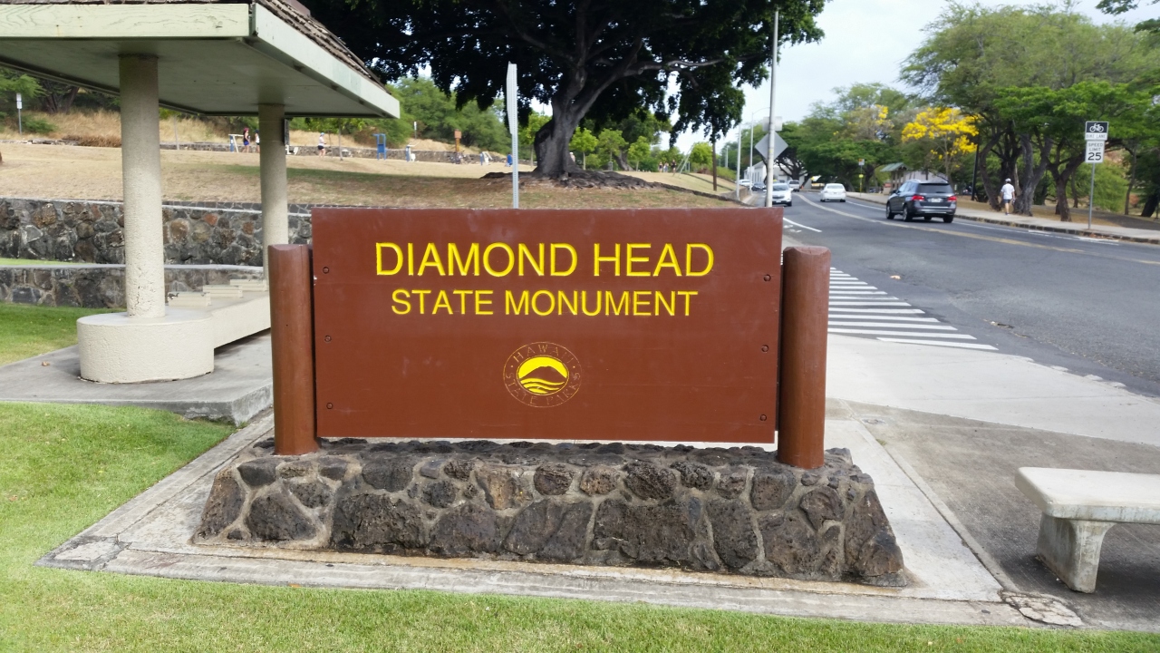 ワイキキからザ・バスにてダイヤモンドヘッド最寄停留所へ行きました.入山料$1を支払い,いざ登山.徒歩30分ほどでしたが,最終辺りの急な登り階段がきつかったです.頂上からはワイキキのホテル群が一望でき,気持ちの良い強風に煽られながら下山しました.小さな子供を抱えて登っている方も多く,水分補給と体力が要ります.