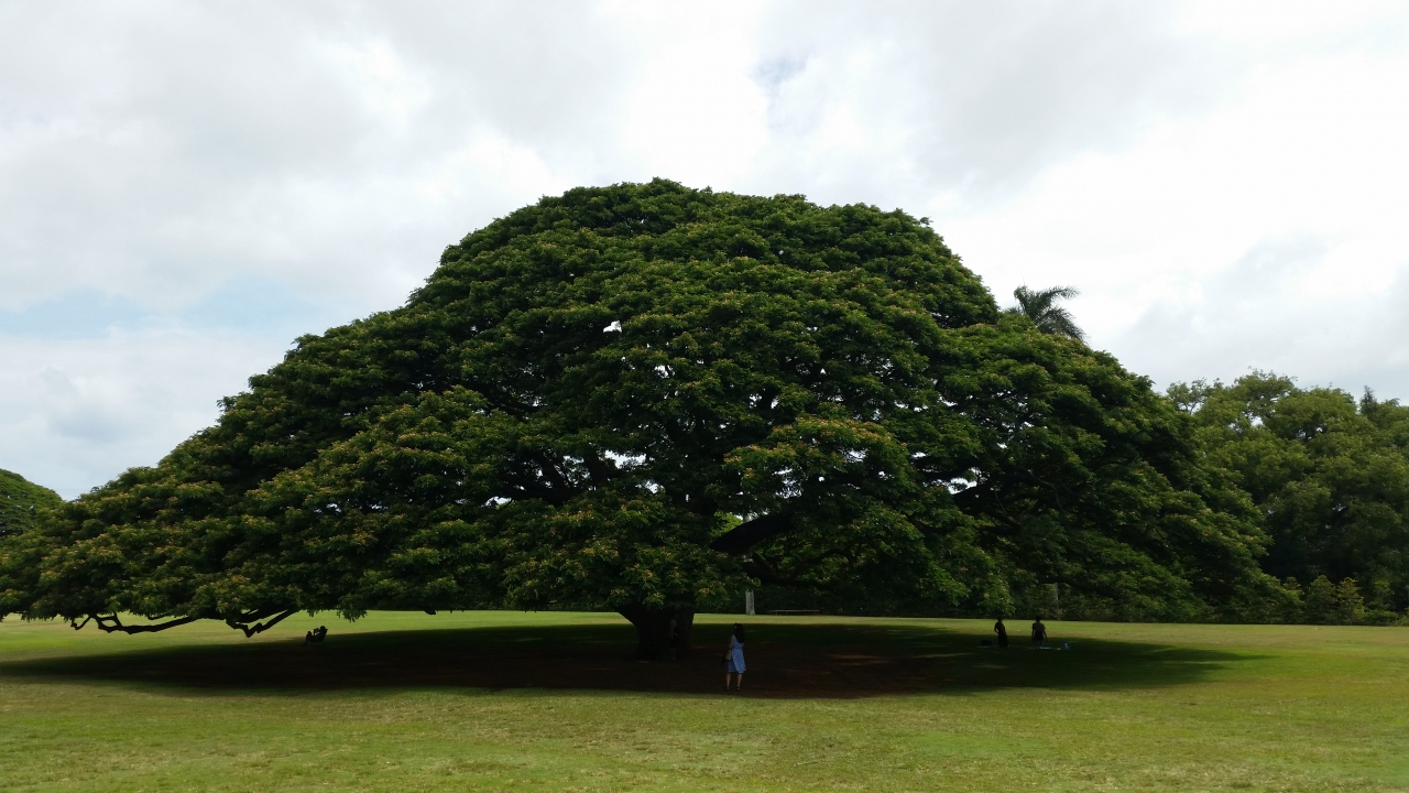 ザ・バスにてモアナルアガーデンへ行きました.最寄りバス停から徒歩10分ほどでした.以前までは無料であったようですが,今は$3徴収されました.記憶よりもかなり小さなガーデンでした.日立製作所CMで馴染みのあるモンキーポットですが,数本あるのみでした.花が咲いていましたので,昔テレビで見た木とは印象が違っていました.木陰はかなり涼しく感じられました.流石,大木です.