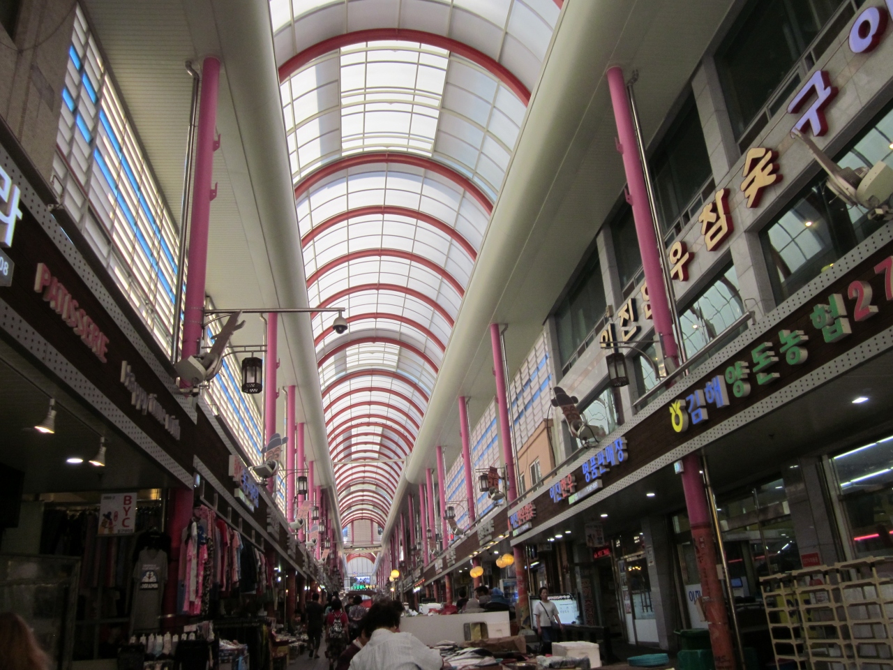 大きなアーケード状の商店街のような感じで、主に食品が売られています。