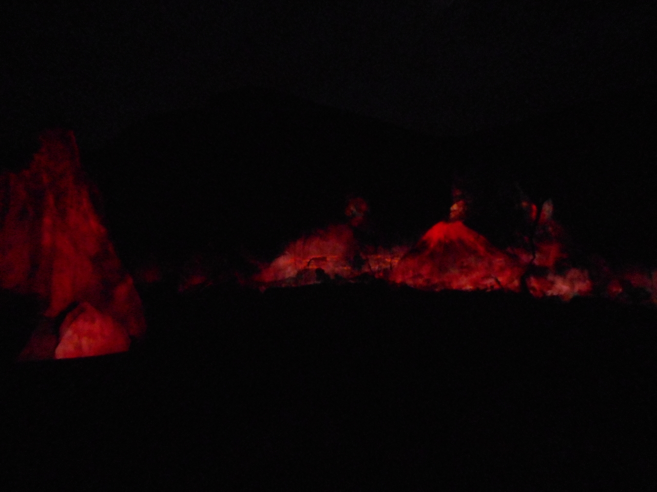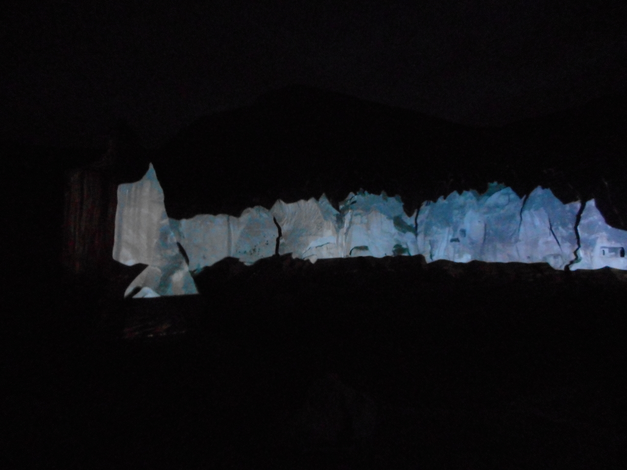 渓谷の岩肌にトルコの歴史を映し出すプロジェクションマッピングを見ました。時間は30分ほどです。もちろん日本語の説明は一切ありません。草むらに直に座るので、夜露でボトムが濡れる可能性があります。昼間は暑くても夜は寒いので注意が必要です。