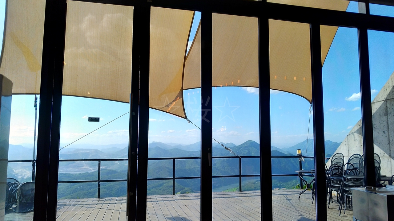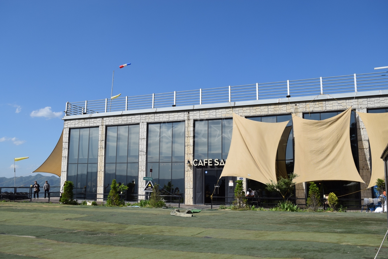 パラグライダーの出発地となる山の上にあり、丹陽江を見下ろすことが出来る眺望の良いカフェです。